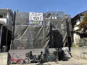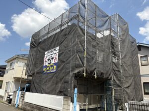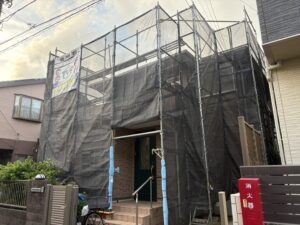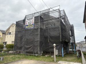 工事内容:足場設置、高圧洗浄、下地調整、下塗り、中塗り、上塗り、軒裏天井・破風板・雨樋の塗装、足場解体、清掃となっております。